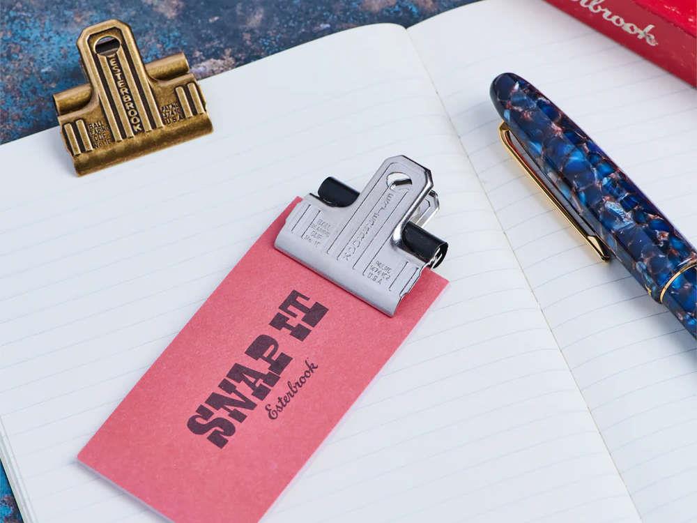 • Eine Anspielung auf die Vergangenheit und ein Werkzeug für die Gegenwart: Die Esterbrook Eclipse sind das neue Accessoire der amerikanischen Marke, inspiriert von ihren Archiven aus den frühen 1900er Jahren. Diese Seitenklammern im Vintage-Stil wurden für die Gegenwart neu erfunden und behalten dabei ihre nostalgische Essenz, bieten jedoch die Funktionalität, die das moderne Schreiben erfordert.